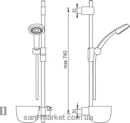 Душовий гарнітур зі штангою Oras колекція Natura з мильницею хром 500