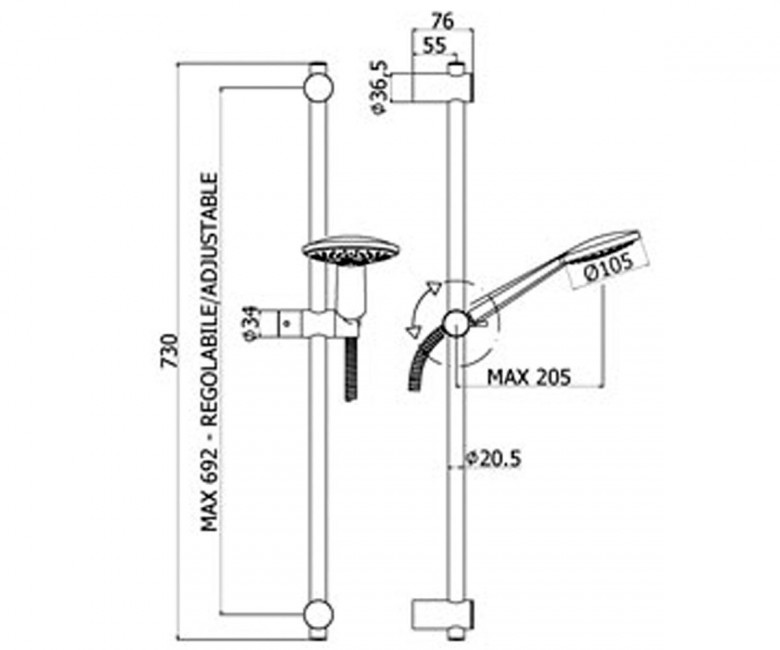 Душовий гарнітур зі штангою Paffoni хром ZSAL 195 CR