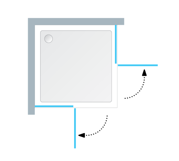 Хромовані петлі зфункцією відкриття всередину або назовні +/- 90. Підходить для невеликих ванних кімнат, де повне відкривання всередину дає додатковий простір (в разі, якщо душова кабіна встановлена на низький піддон).