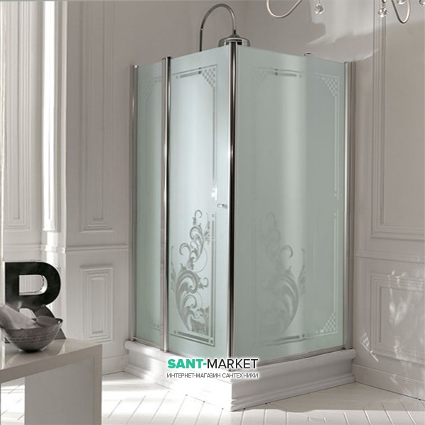Душовий куточок правобічний Kerasan Retro DX 80х96 см двері з боку 80 см профіль хром скло матове з декором