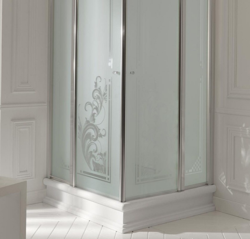 Душовий куточок Kerasan Retro DX / SX 100х100 см профіль хром матове скло з декором