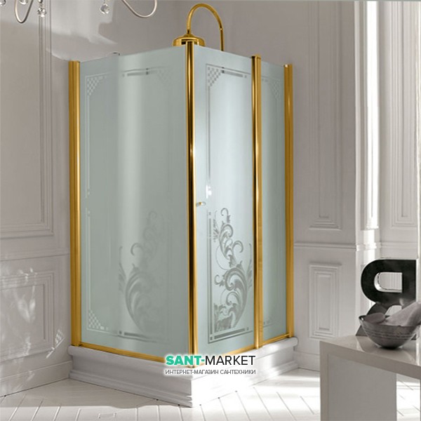 Душовий куточок Kerasan Retro SX 80х96 см двері з боку 80 см профіль золото скло матове з декором 9143P1