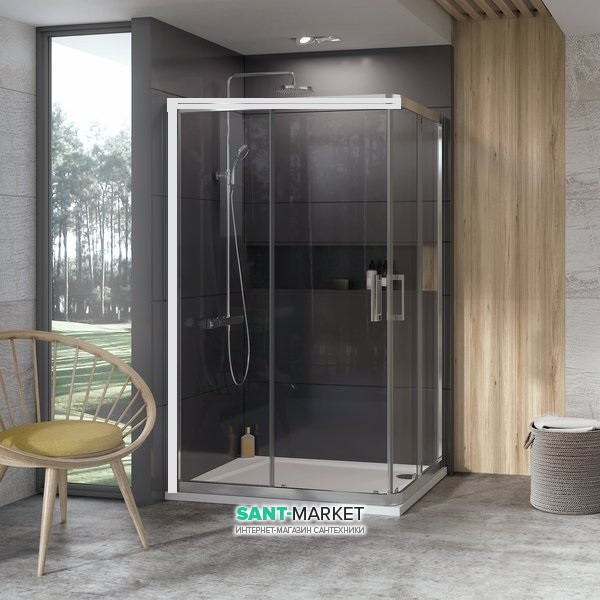 Душовий куточок квадратний Ravak 10 ° 10RV2K-100 білий профіль, вітраж прозоре скло transparent