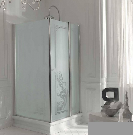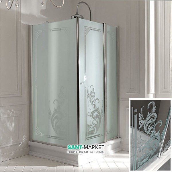Душовий куточок лівобічний Kerasan Retro SX 100х100 см профіль хром прозоре скло з декором