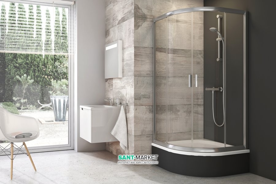 1) Душовий куточок напівкруглий Ravak Blix BLCP4-80 Sabina профіль полірований алюміній скло transparent