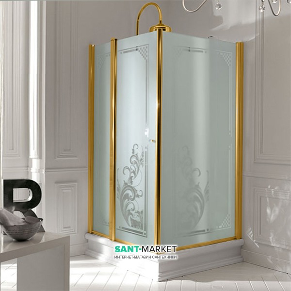 Душовий куточок правобічний Kerasan Retro DX 100х100 см профіль золото матове скло з декором