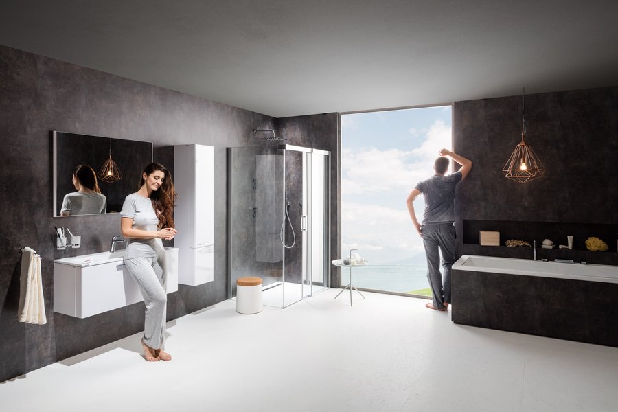 Для душового куточка Matrix характерні прямі плоскі лінії і форма паралелограма. Верхній і бічний профілі невимушено виділяють форму душового куточка, а відсутність нижнього профілю дозволяє підкреслити керамічну плитку, якщо підлога, на якому встановлений душовий куточок, нею прикрашений.