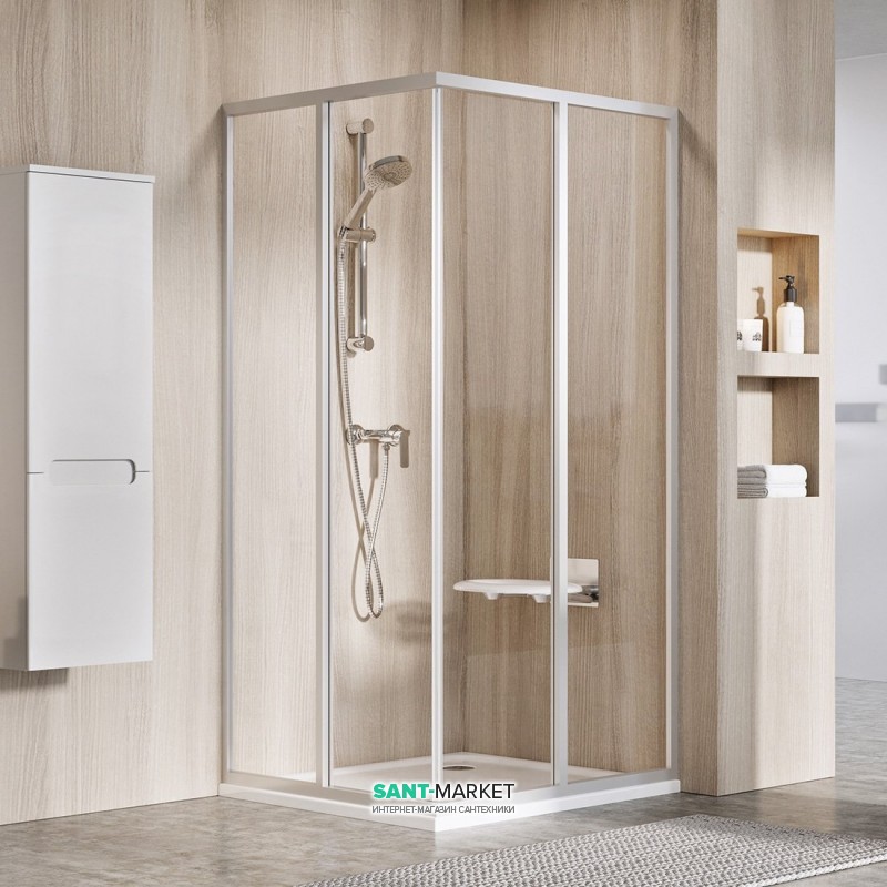 1) Душовий куточок прямокутний розсувний Ravak SRV2-S + SRV2-S - 80 S чотирьохелементний з кутовим входом метал сатин / скло прозоре
