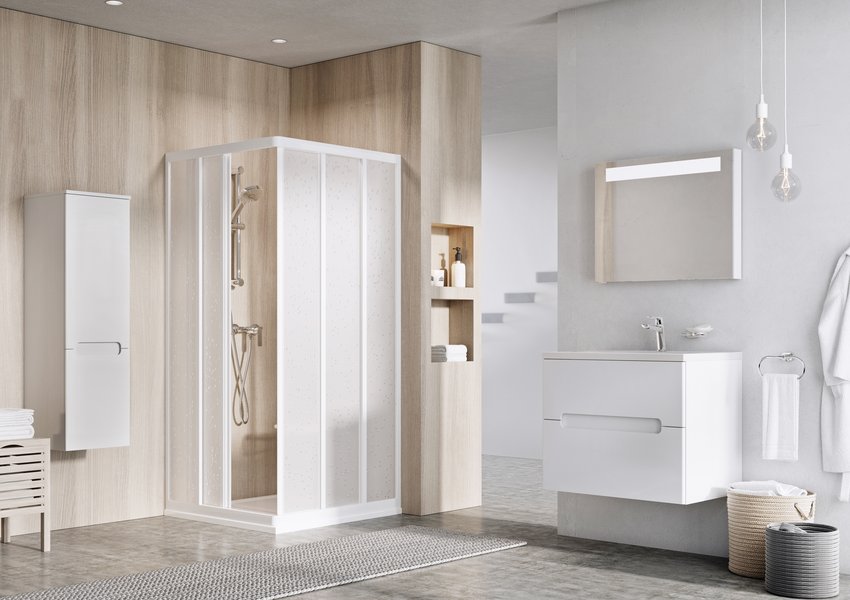Для комплектації душового куточка необхідно замовити 2 вироби! Встановлюється в облицьований кахлем кут ванної кімнати на піддони RAVAK ANETA, ANGELA, PERSEUS, PERSEUS PRO, PERSEUS PRO FLAT, PERSEUS PRO CHROME, GIGANT PRO, GIGANT PRO FLAT, GIGANT PRO CHROME або безпосередньо на підлогу з вбудованим душовим каналом або трапом.