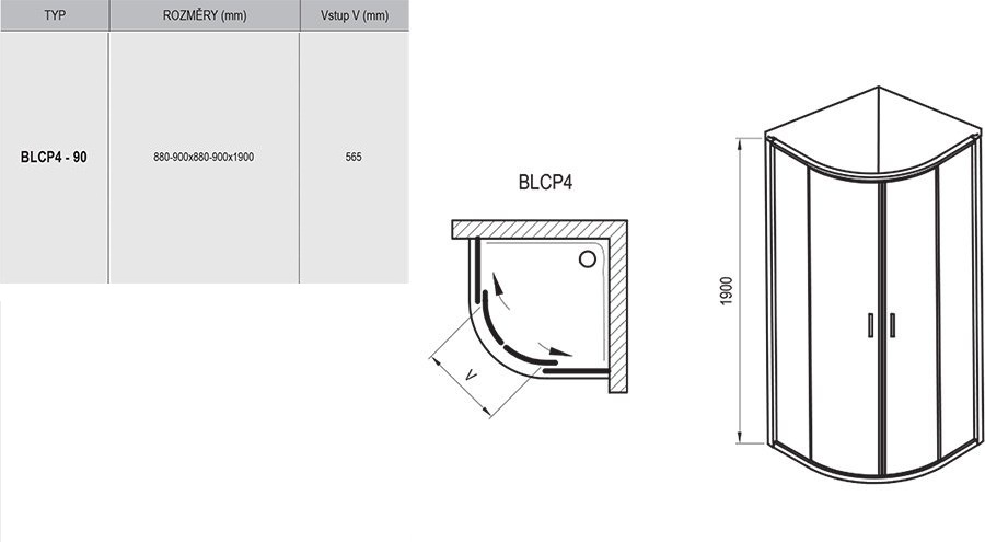 Встановлюється в облицьований кахлем кут ванної кімнати на піддони RAVAK Ronda, Elipso, Elipso Pro, Elipso Pro Flat, Elipso Pro Chrome або безпосередньо на підлогу з вбудованим душовим каналом або трапом.