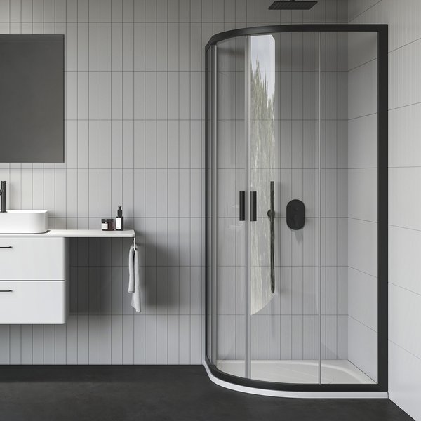 Продукт складається з двох рівних фіксованих частин та двох вигнутих частин, що утворюють розсувні двері. Куточок ванної кімнати на піддонах Равак Ронда, Еліпсо, Еліпсо Про, Еліпсо Про плоский, Elipso Pro Chrome або безпосередньо на підлогу з вбудованим душемканал або драбина.