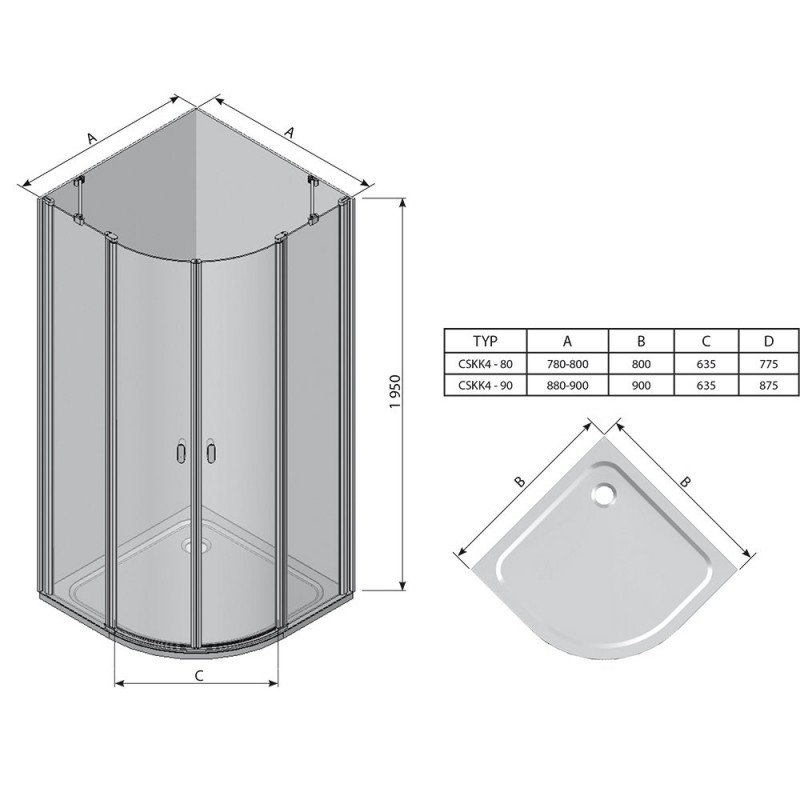 Душовий куточок напівкруглий чотирьохелементний CSKK4