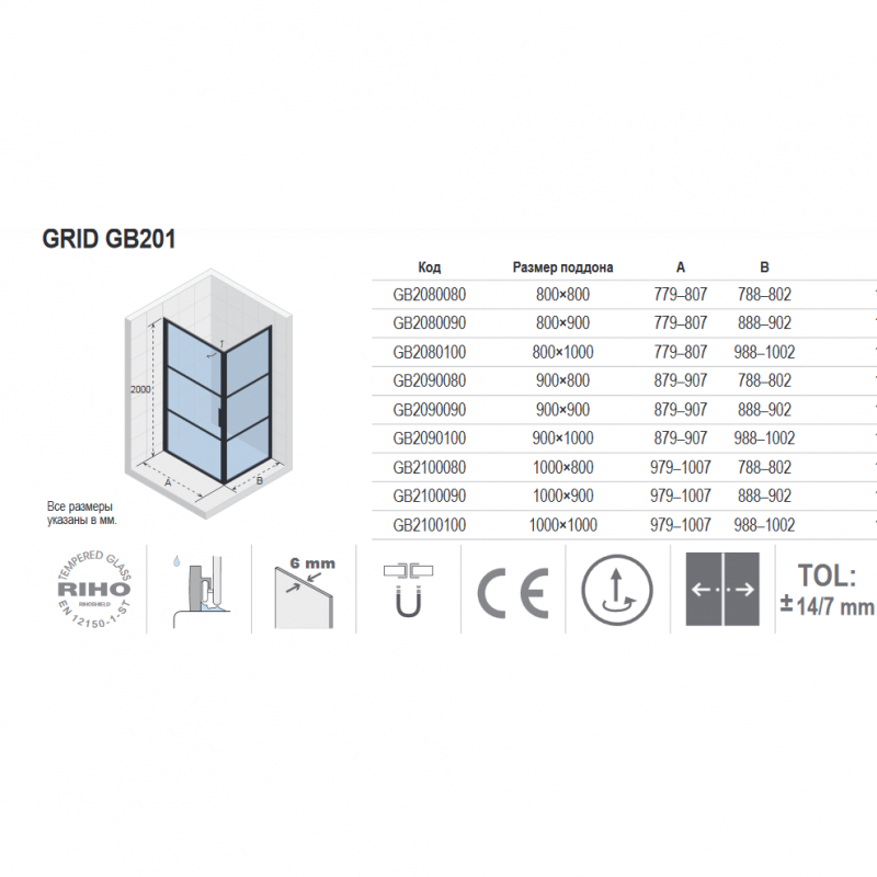 Душовий куточок Riho Grid GB201 100x80 см чорний матовий / прозоре скло