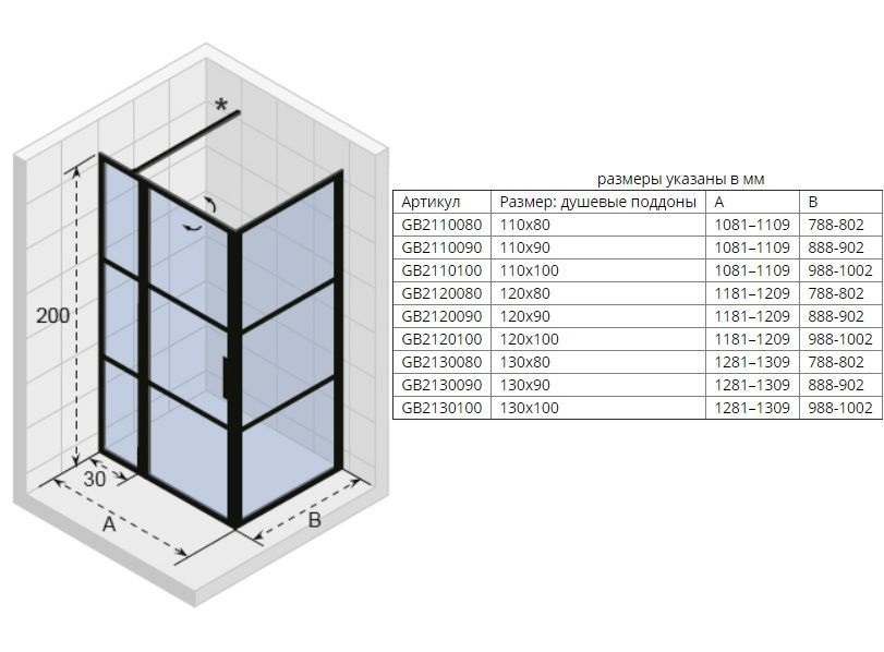 Душовий куточок Riho Grid GB203 110x100 см чорний матовий / прозоре скло