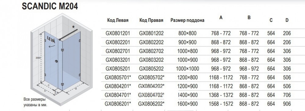 - Колір двері / стінки: прозорий