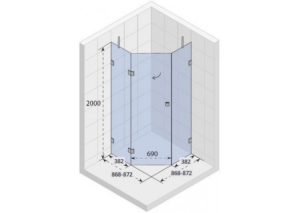 1) Душовий куточок Riho Scandic S-301 90х90 см хром / прозоре ск