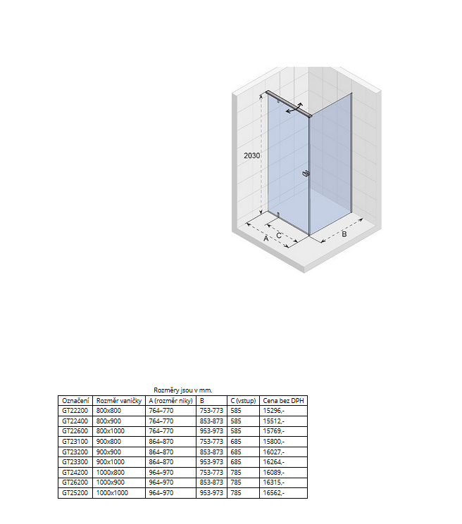 - Колір двері / стінки: прозорий
