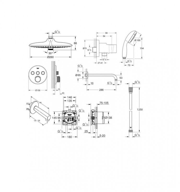 Набір для ванни та душу Grohtherm Smartcontrol складається з 8 елементів:
