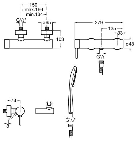 Душовий набір з одноважільним настінним змішувачем для душу Roca Lanta strong>