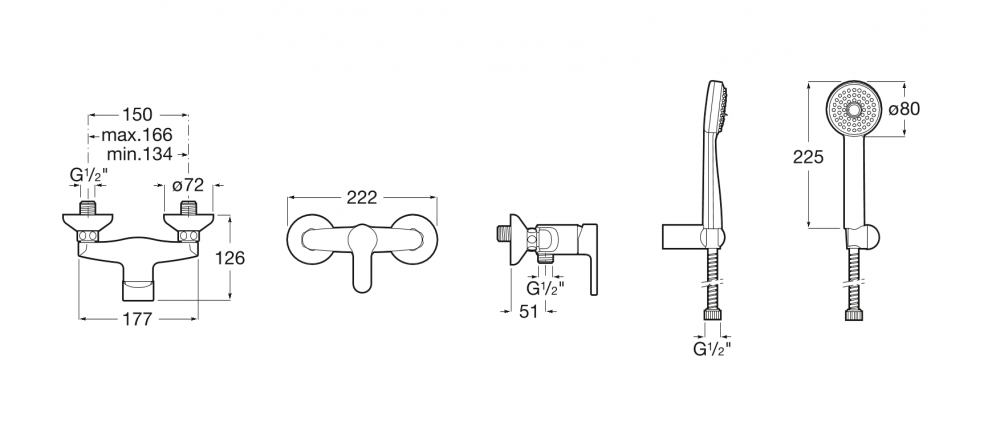 Душовий набір з одноважільним настінним змішувачем без виливу Roca Arola