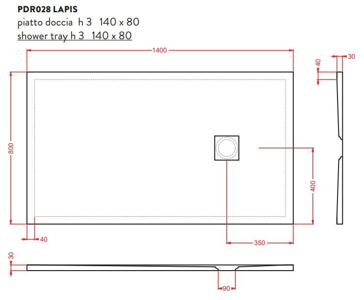 Душевий піддон Artceram Lapis 80х140 см кераміка цемент