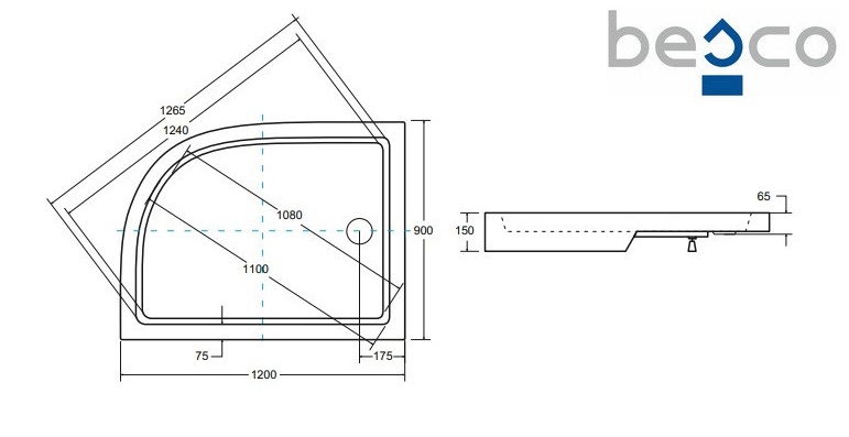 Душовий піддон Besco Saturn 100x80 см L лівий акрил білий BAS-120-NL
