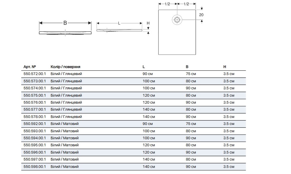 Душевий піддон Geberit Nemea 140х80 см санітарний акрил білий матовий