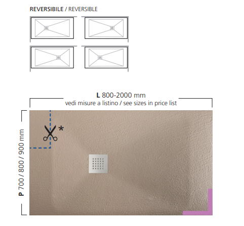 Завдяки легкості обрізки піддон може бути адаптований до особливих розмірами, що дозволяє зберігати цілими колони, низькі стіни або кути, існуючі в приміщенні.