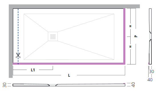 - Завдяки легкості обрізки піддон може бути адаптований до особливих розмірами, що дозволяє зберігати цілими колони, низькі стіни або кути, існуючі в приміщенні.