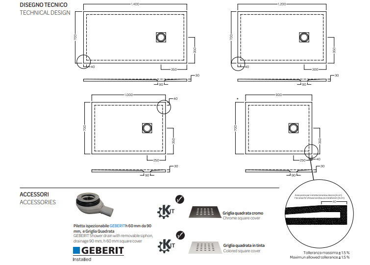 Душовий піддон Hatria Petra H3 Ardesia 120x70 см з сифоном кераміка айворі PA1200700120T