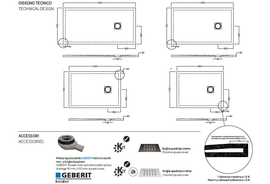 Душовий піддон Hatria Petra H3 Levigato 90x70 см з сифоном кераміка білий PL0900700011T