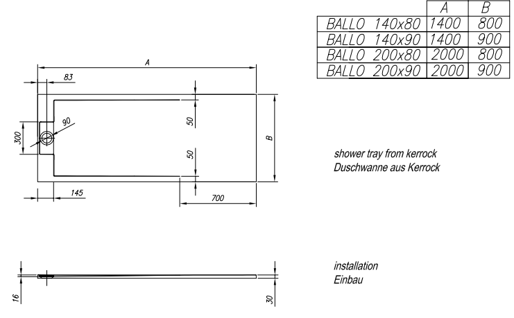 Ви можете самі пристосувати душові піддони Ballo до своїх потреб, оскільки Ви можете точно визначити найбільш підходящий розмір для Вашої ванної кімнати.