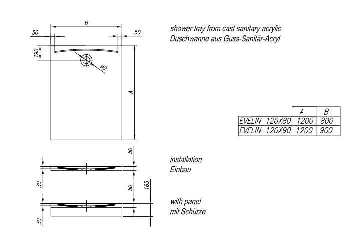 Душевий піддон Evelin Tray Q з литого санітарного акрилу чудово доповнить будь-яку ванну кімнату в будь-якому стилі. Може бути вбудований у підлогу або на підлогу.