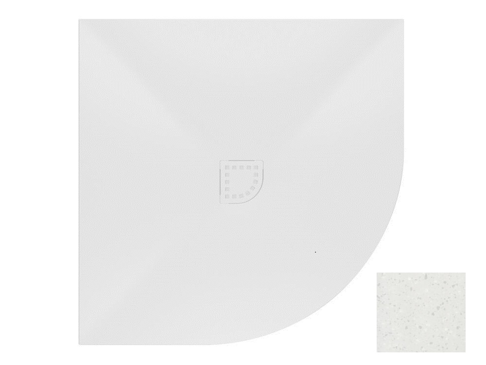 Напівкруглий душовий піддон із матеріалу Кerrock з динамічним дизайном, що відображається також у гармонійній формі зливу. Можливе вбудовування в підлогу або встановлення на підлогу.