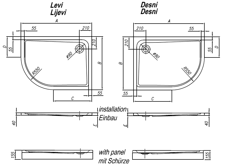 Асиметричні душові піддони MALUR Kolpasan випускаються розміром 120х90 і 100х80 в правому і лівому виконанні. Низьке розташування бортів підвищує ергономічне зручність виробів при експлуатації, що робить модель оптимальним рішенням для будь-якої сім'ї. Підстава для душової кабіни - прямокутник з одним скошеним кутом. Подібна конфігурація обіцяє відміннумісткість і разом з тим приємний дизайн. Виріб відмінно вписується в більшість інтер'єрів і може стати хорошим вибором для ванних кімнат будь-якої площі. Душовий піддон від Kolpa-San - гарантія якості, довговічності і зручності.