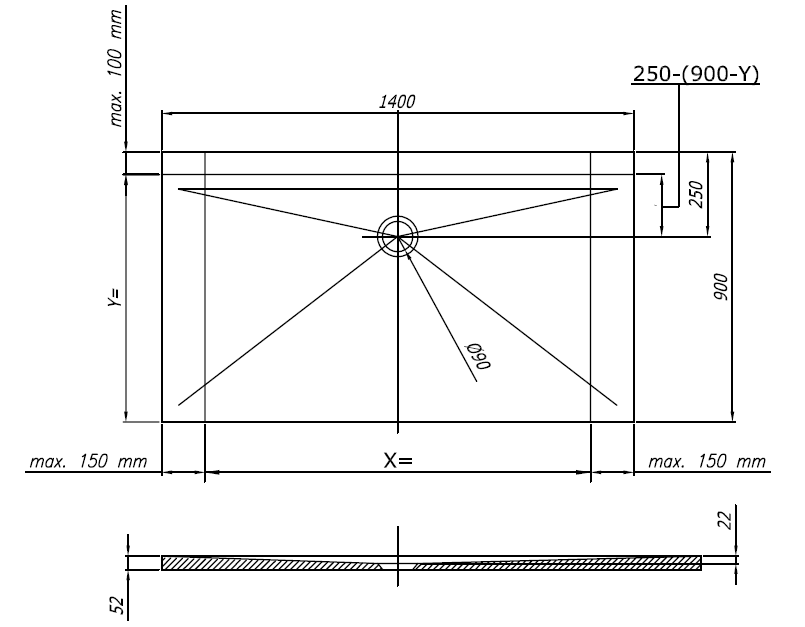 Піддон можна монтувати на підлогу, подіум або каркас. Каркас замовляється окремо. Для зручності обслуговуванняпіддону додатково пропонуємо придбати знімну фронтальну і бічну панелі - панелі виготовлені зі штучного каменю Kerrock.