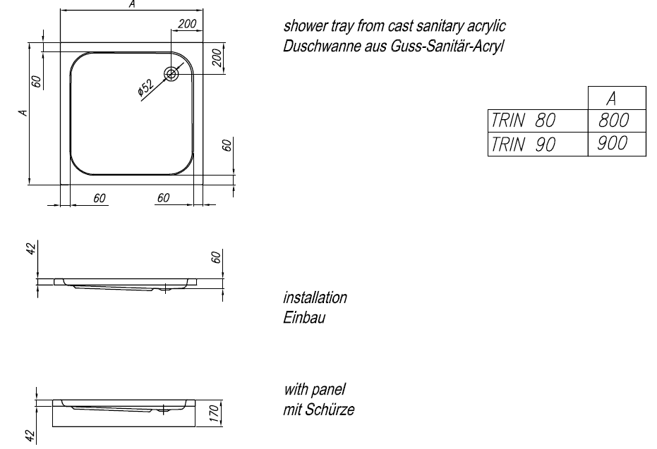 Вбудований душовий піддон Kolpa San Trin з сантехнічного акрилу в стилі мінімалізму. Для установки на підлогу. Для інших способів установки Ви можете вибрати опціонально каркас і панелі для піддону. Сифон в комплект не входить.