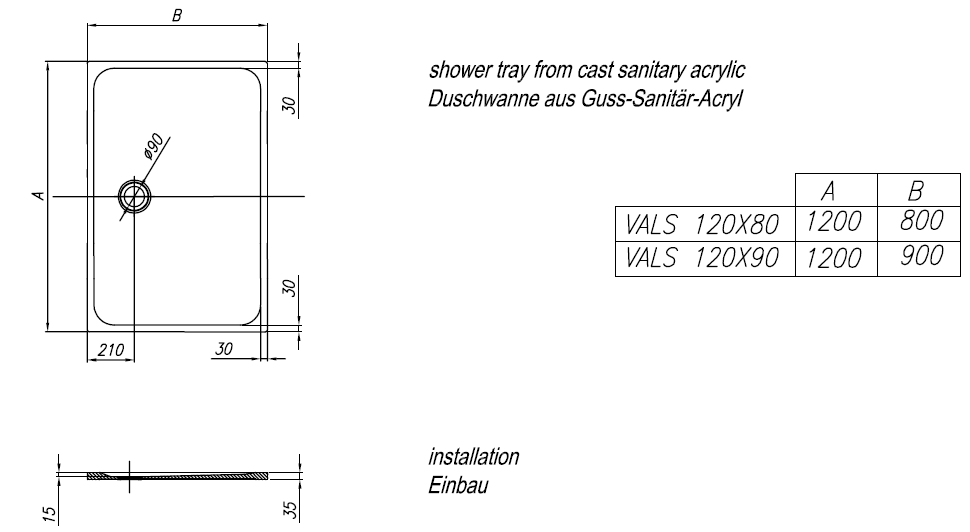 Душовий піддон з литого мармуру Kolpa-San Vals з акрилової панеллю - надійний вибір для невеликих ванних кімнат з сучасним дизайном. Злив розташований в широкій частині піддона. Душовий піддон з литого мармуру або неглибокий з вкладишем - надійний вибір для невеликих ванних кімнат з сучасним дизайном.