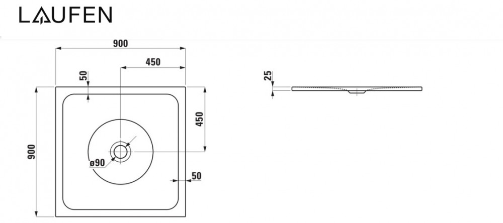 Душевий піддон Laufen Indura 90х90х2,5 см емальована сталь білий