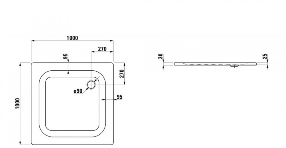 Душовий піддон Laufen Platina 100х100 см емальована сталь із покриттям Antislip білий H2150046000401