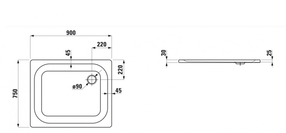 Душовий піддон Laufen Platina 75х90 см емальована сталь білий H2150030000401