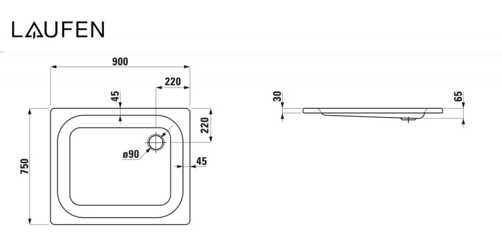 Душовий піддон Laufen Platina 75х90 см емальована сталь білий H2150130000401