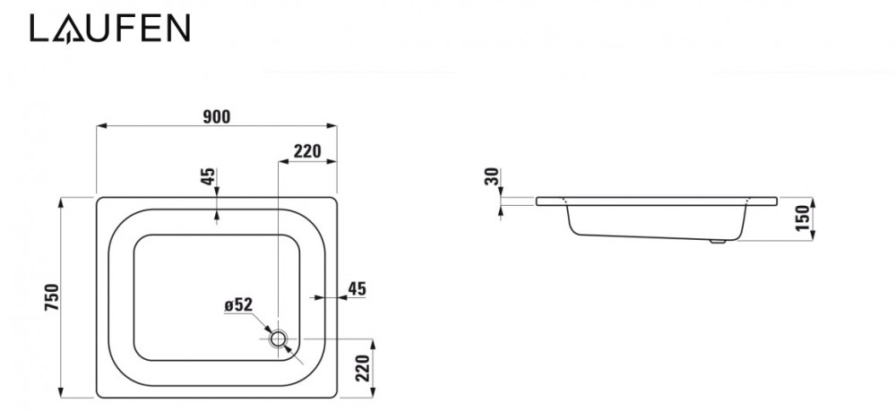 Душовий піддон Laufen Platina 75х90х15 см емальована сталь білий H2150230000401