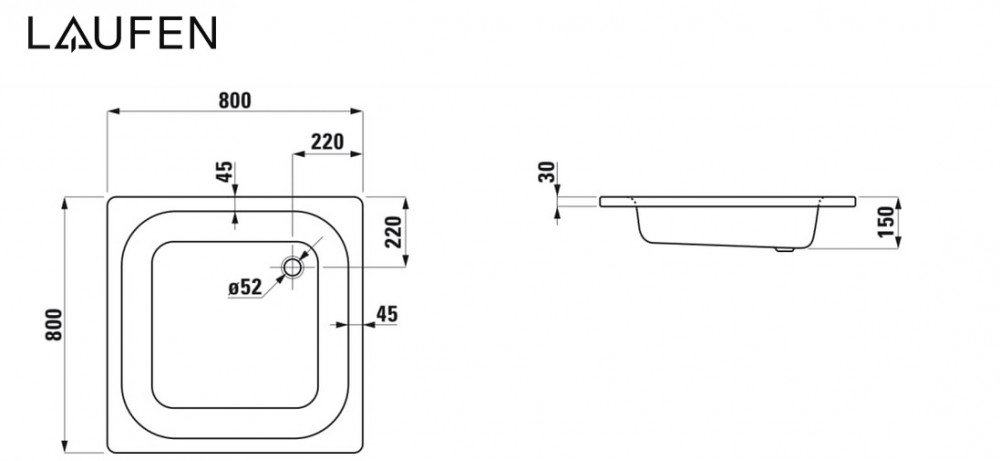 Душовий піддон Laufen Platina 80х80х15 см емальована сталь білий H2150210000401