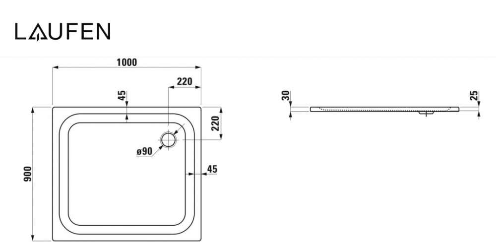 Душовий піддон Laufen Platina 90х100х2,5 см емальована сталь білий H2150300000401
