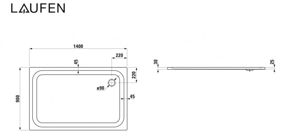 Душовий піддон Laufen Platina 90х140х2,5 см емальована сталь білий H2150340000401