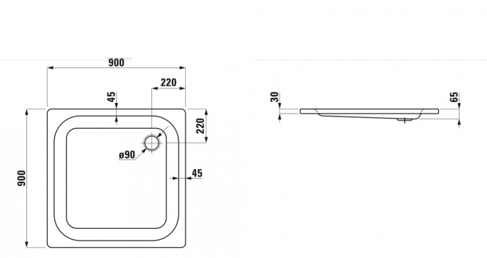 Душовий піддон Laufen Platina 90х90 см емальована сталь білий H2150120000401