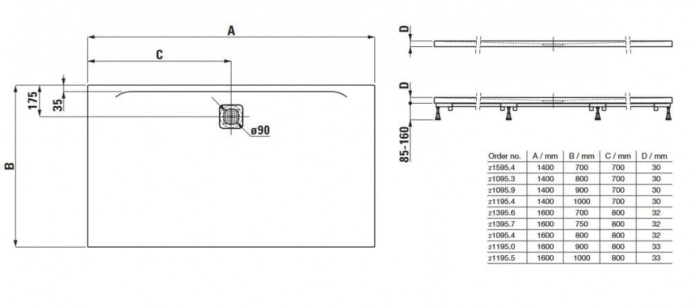 Душовий піддон Laufen Pro 100х160 см композитний матеріал Marbond бетон H2119550790001