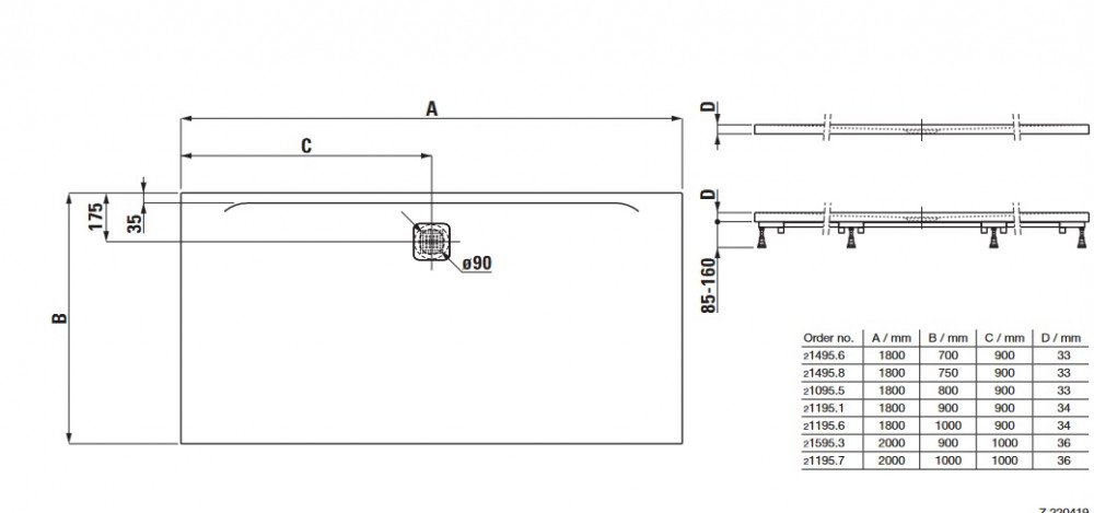 Душовий піддон Laufen Pro 100х200 см композитний матеріал Marbond бетон H2119570790001