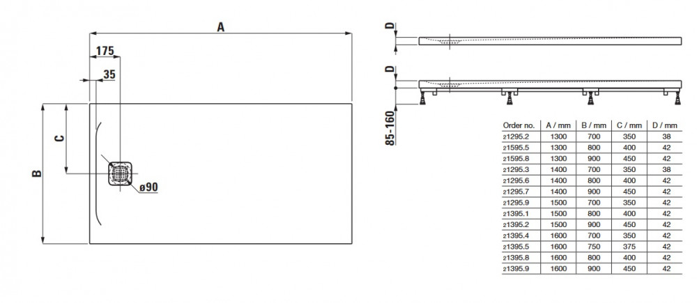 Душевий піддон Laufen Pro 90х160 см композитний матеріал Marbond світло-сірий